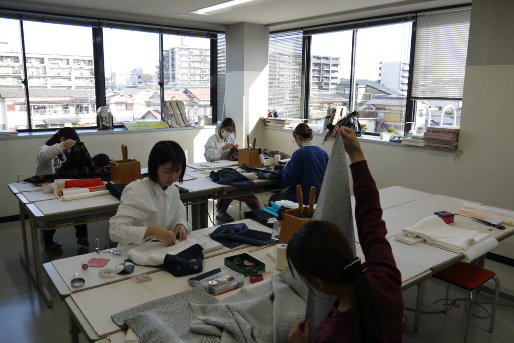 和裁学科の授業は主に実習、そして和服以外の専門知識を培うための座学を行っているらしく